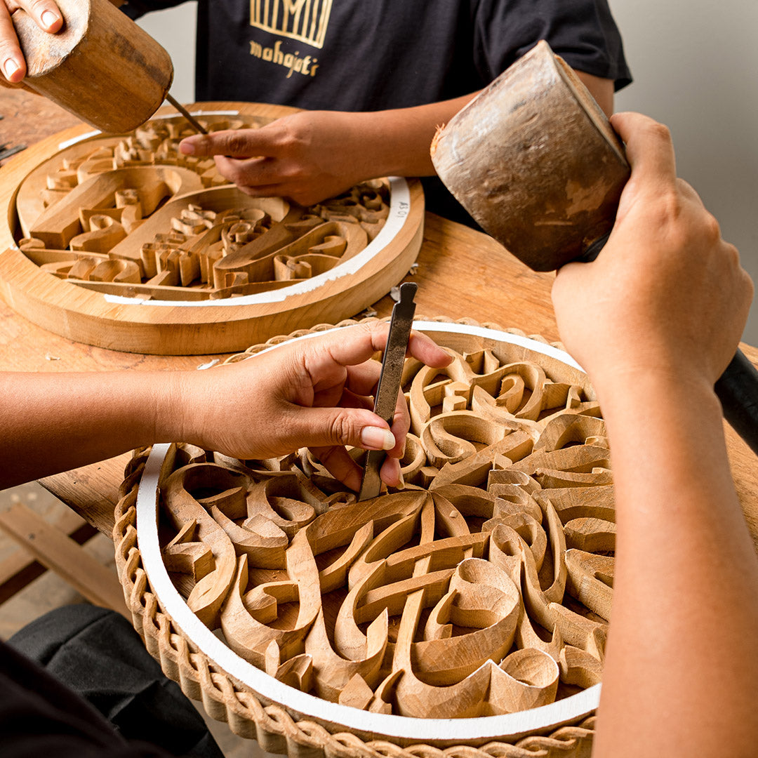 At Mahajati, every piece of art is meticulously handcrafted, ensuring unparalleled depth, detail, and uniqueness. Unlike CNC machines that produce identical replicas, our 3-dimensional calligraphy is shaped by skilled hands, creating natural variations that make each piece one of a kind.