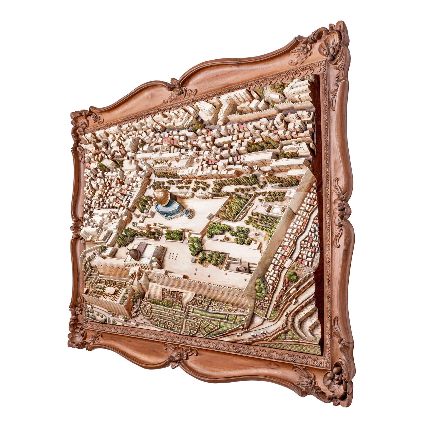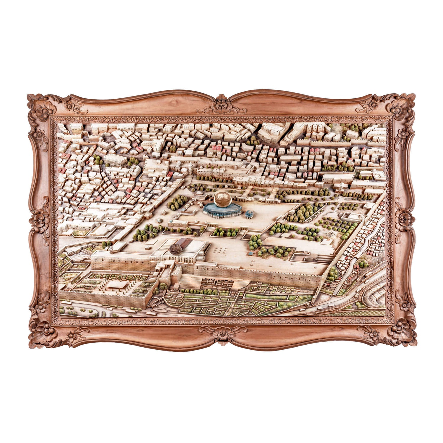 Our fascination with Baitul Maqdis is captured in this depiction of the city skyline at sunrise before the city comes to life and filled with activities. The sunrise over the majestic skyline draws pure excitement that we want you to love as much as we do. Drawing on elements of Islam in life, this 200cm (length) by 150cm (height) three-dimensional hand carving of the Baitul Maqdis city skyline is intended to portray the beauty in humanity, harmony, and community that Islam values highly. This very large piece of hand-carved art will be a great compliment to your home, office or for a gift for special occasions. Ideal for placement in your living room or office lobby.
