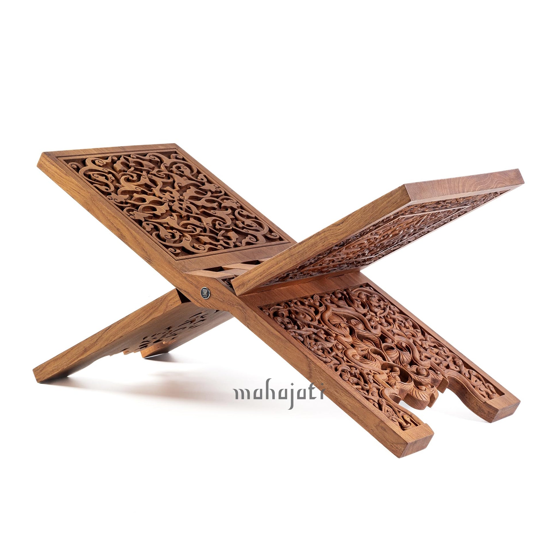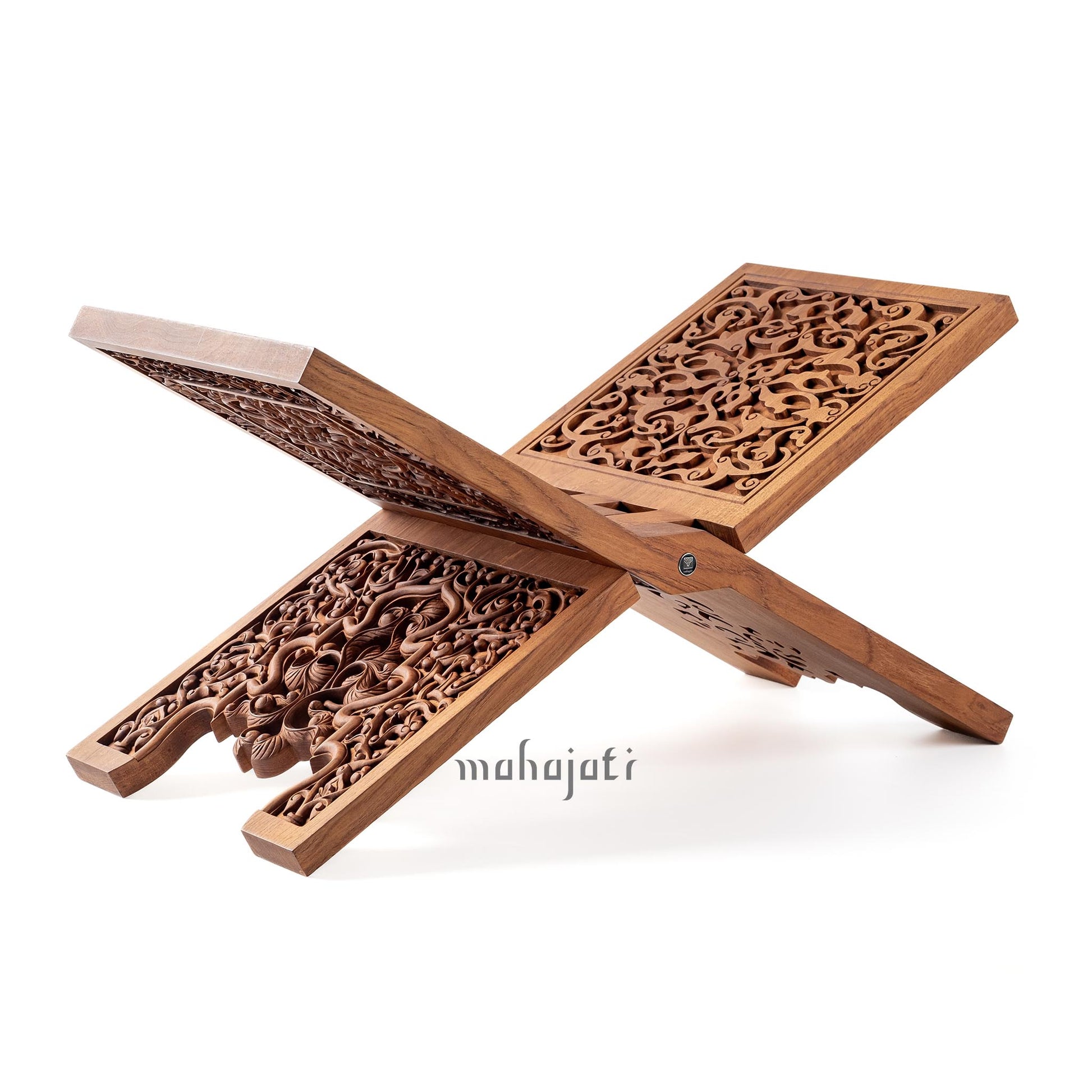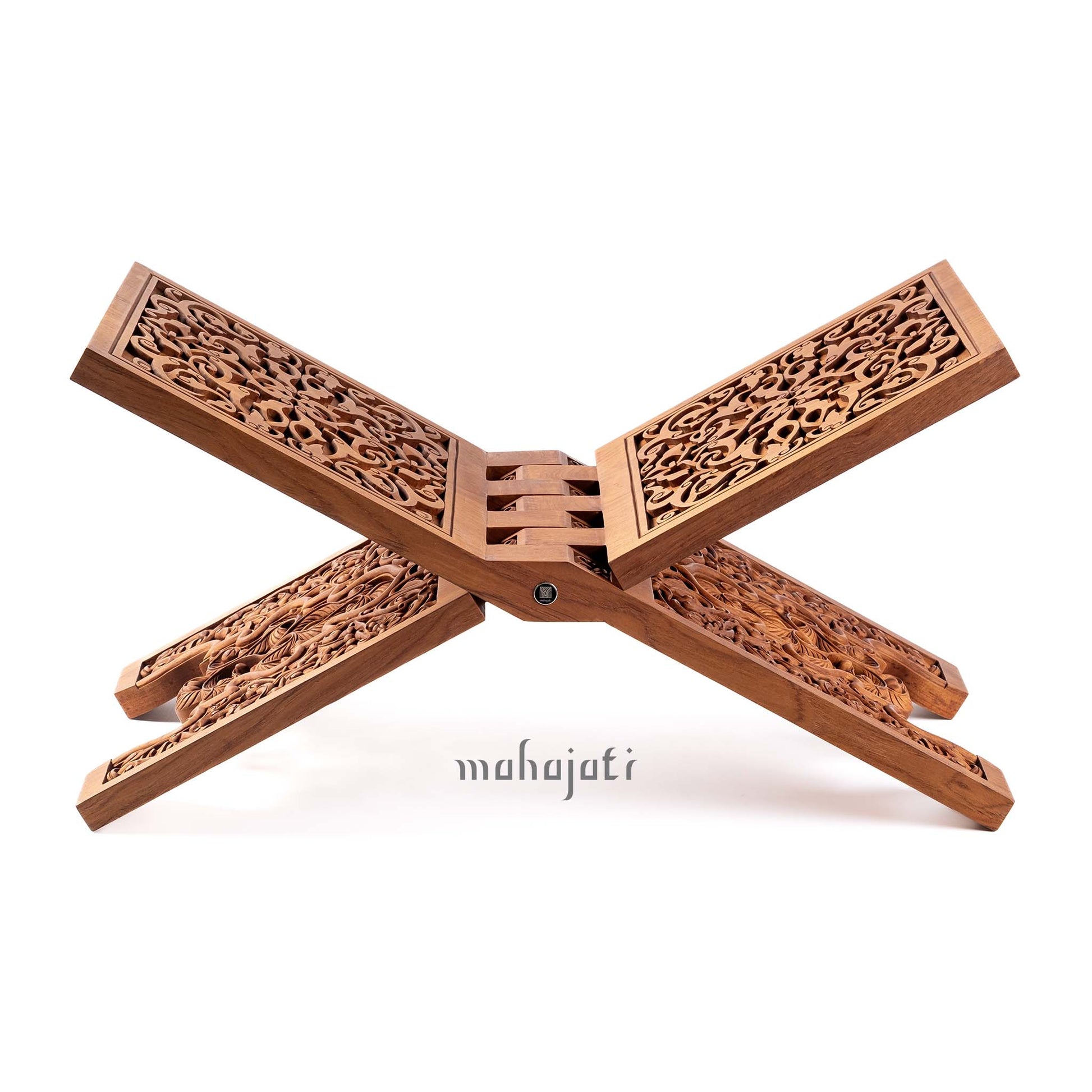 This Rehal/Book Holder is made out of high quality teak wood. Ayatul Kursi is hand-carved by highly skilled artisans, using chip carving technique, adding a decorative appeal on the wood.